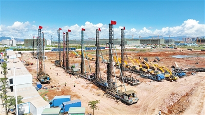 6月26日上午,位于珠海高栏港高速西侧的两片空地彩旗猎猎,数十台工程车辆来回穿梭,数百名工程人员在朝阳下挥汗如雨。随着上百台桩机齐轰鸣,全市规模最大的5.0产业新空间全面动工,吹响了珠海“产业第一”攻坚行动向纵深推进的冲锋号角。