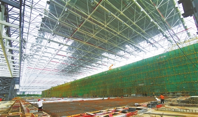 航展中心配套服务一期项目位于珠海机场西侧,总建筑面积4万平方米,主要包括三个新建航展馆(9-11#馆)、飞机动态演示区、平滑道等设施,是中国航展进一步扩大规模、完善配套、提升内涵的重要载体,对推动中国航展在新形势、新起点上加快实现新的跨越发展具有重要意义。展馆主要结构形式为钢结构,其中,展厅大门跨度72米,屋盖跨度58.8米,总用钢量约5000吨。
