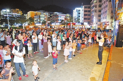 28日晚,“爱乐横琴”艺术普及系列公益活动在横琴风情广场拉开序幕,周边社区居民到场观摩并参与了网红舞蹈教学表演。